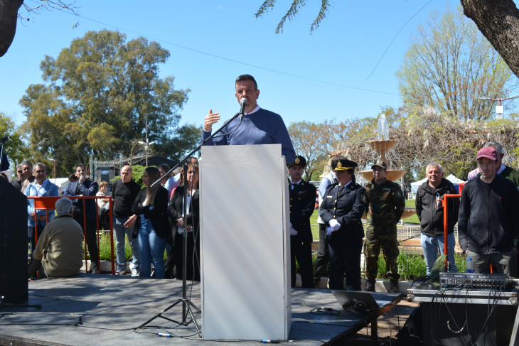 El acto oficial se realizó sobre calle Berro, donde el intendente Maximiliano Sciaini dirigió unas palabras a los vecinos y vecinas, destacando el trabajo del gobierno municipal y entregando placas conmemorativas a cuatro instituciones educativas que también cumplen un nuevo aniversario.