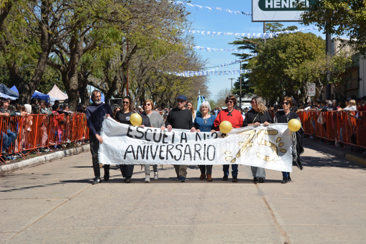 Luego tuvo lugar el tradicional desfile cívico escolar, en el que participaron instituciones, entidades y fuerzas vivas de la ciudad. La comunidad acompañó con aplausos y emoción, en un momento cargado de identidad y orgullo local.