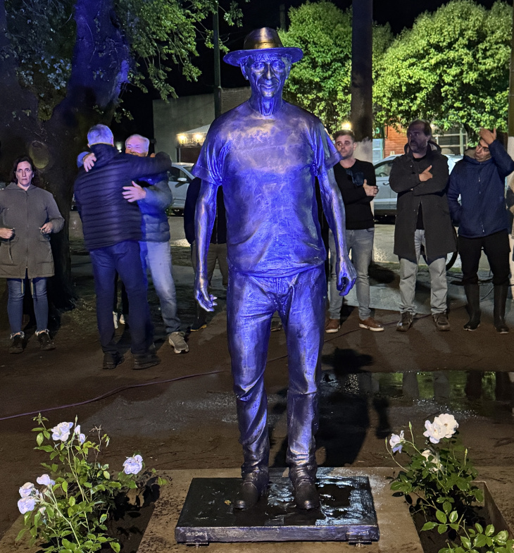 No es un monumento solemne, distante o frío. Es Chinchu tal cual lo recordamos: simple, presente, humano, de remera y alpargatas. Una figura que habla más de cercanía que de bronce; más de memoria viva que de recuerdo lejano.
