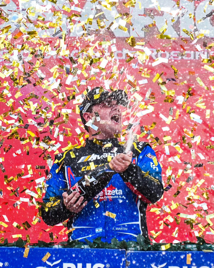 Felipe Martini festejando el primer puesto en el podio.